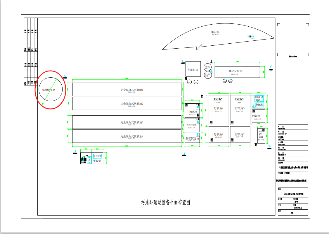 22、請明確雙膜儲氣柜的位置(新舊圖紙均為體現)