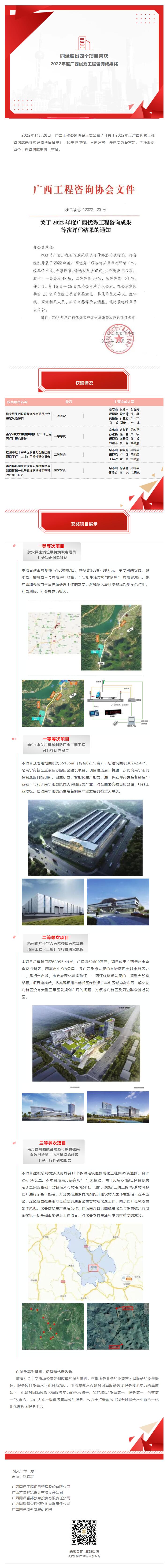 喜訊 | 同澤股份四個項目榮獲2022年度廣西優秀工程咨詢成果獎